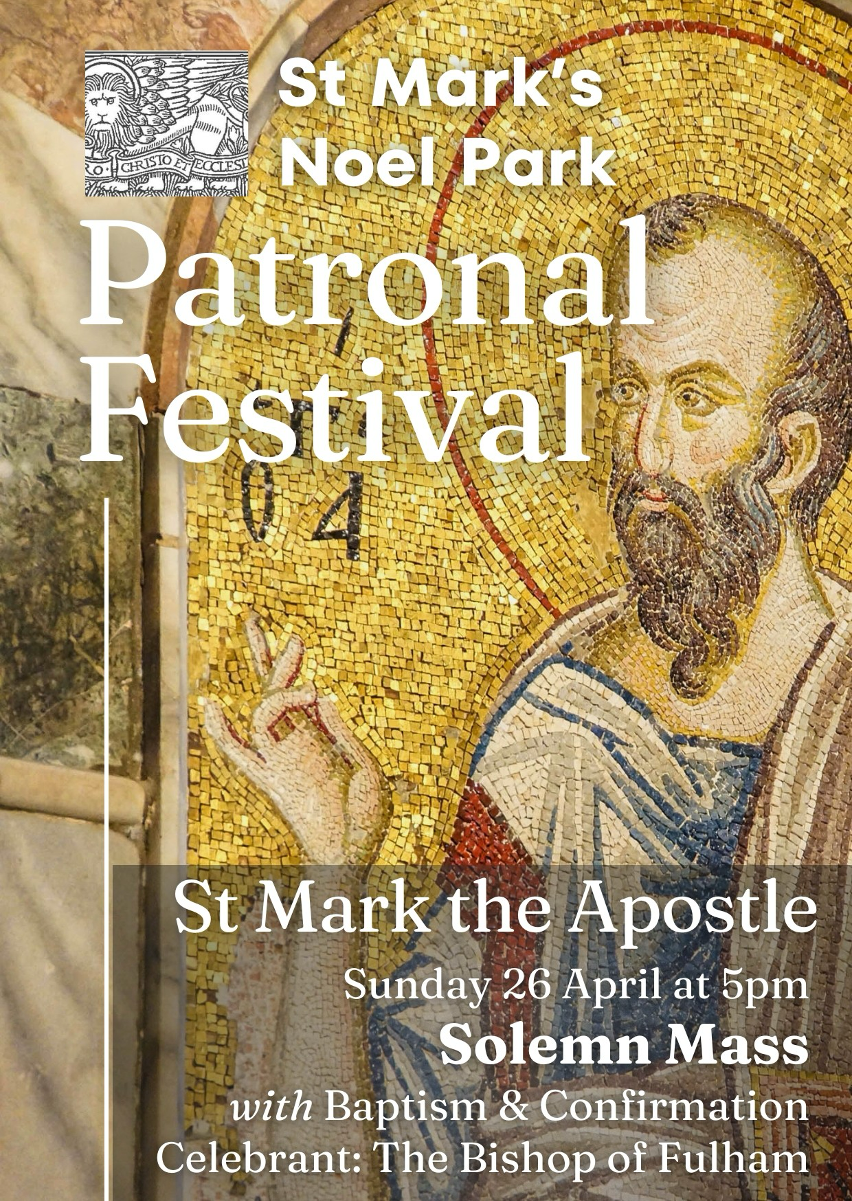 Included with this mailing is an invitation to the Patronal Festival (with Baptism and Confirmation) celebrations at St Mark, Noel Park on Sunday, 26 April at 5pm – followed by a party.